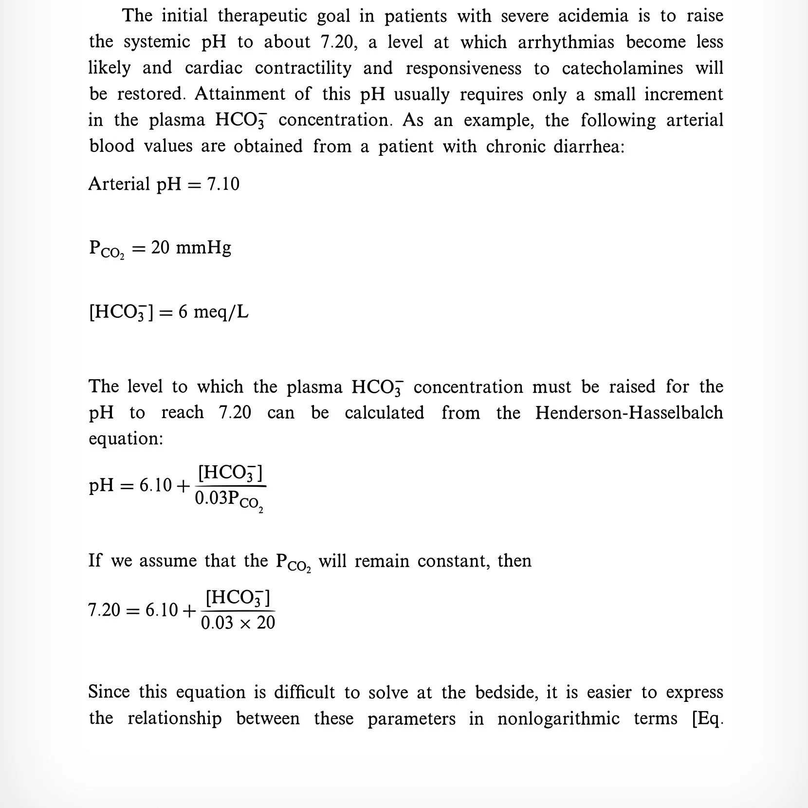 Example: 70 kg, raise HCO3 6→10 using 0.7 space = 196 mEq
